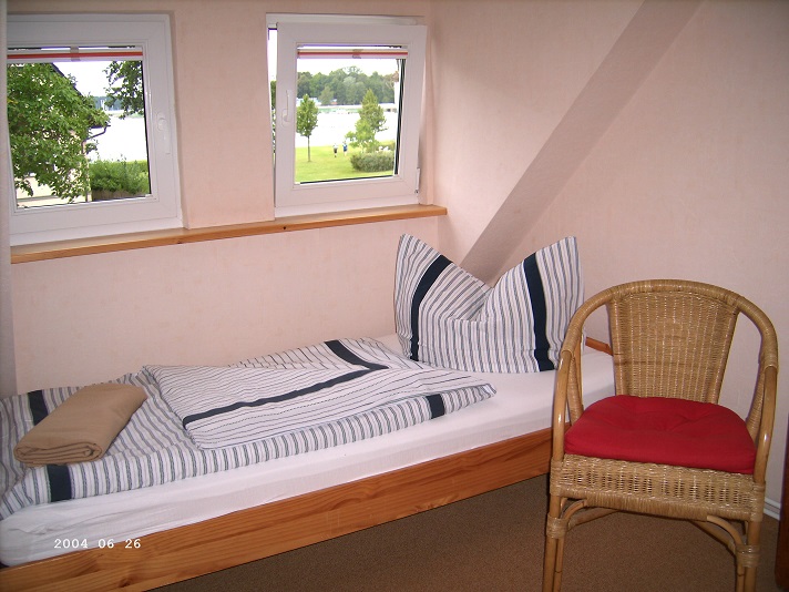 Große Ferienwohnung: 80 m² mit Müritzblick im Obergeschoss des Hauses und Gartenbenutzung mit Gartenmöbeln und Grill. Wohnzimmer mit TV, WLAN, Küche, Essdiele, 2 Schlafzimmer mit je 2 Betten (ein Kinderbett ist vorhanden, eine Aufbettung ist möglich), Dusche/WC und Gäste-WC, Bootfahren, Fahrradausleih, Nationalpark und vieles mehr in der Nähe, viele Einkaufsmöglichkeiten, Stadtzentrum nur 15 Gehminuten entfernt. Fahrräder können im Hof abgestellt werden, Stellplatz für Pkw auf dem Grundstück.